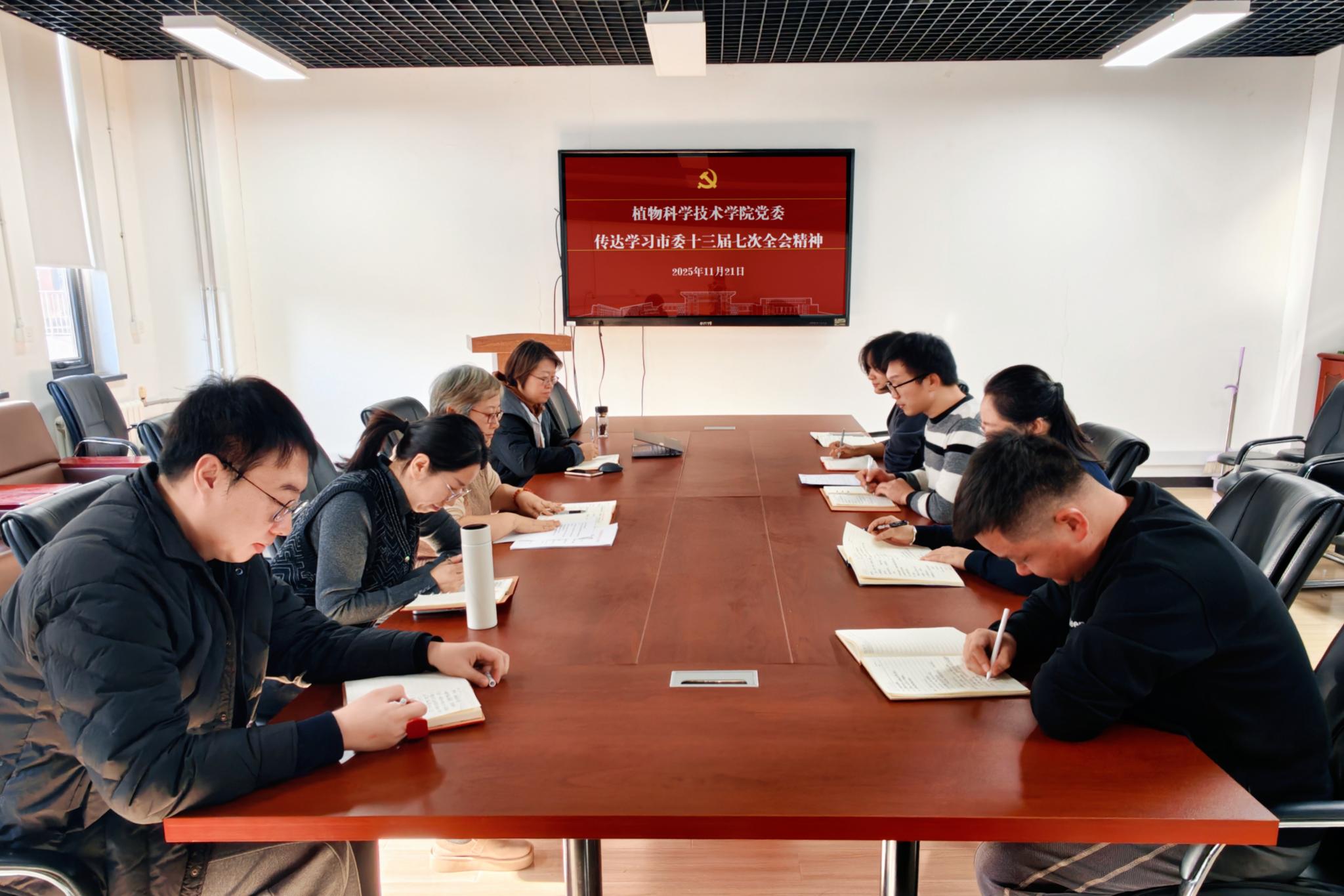 会议强调,要把学习贯彻市委十三届七次全会精神与学习贯彻党的二十届四中全会精神紧密结合起来,深刻把握“看北京首先要从政治上看”的核心要义,切实把思想和行动统一到全会部署上来,以“实干创先年”的精神,科学谋划“十五五”时期学院特色内涵高质量发展目标举措,推动全会精神在学院发展中落地生根,以高质量党建引领学院高质量发展,为首都“四个中心”功能建设和“十五五”规划实施贡献北农植科力量。